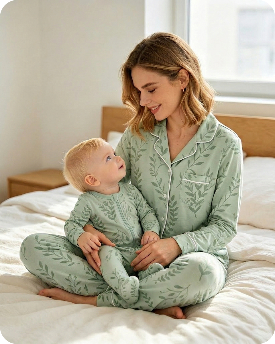 Discover everyday comfort and connection with the Breathable Bamboo Matching Sleepwear Leaf Print Mommy & Baby Set from CloudsBoo — thoughtfully designed for cozy nights, gentle mornings, and sweet matching moments together.