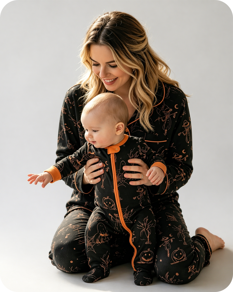 Feel the difference that CloudsBoo brings — more than just pajamas, it’s a nurturing hug woven into every stitch, creating lasting memories with your little one in the coziest, safest way possible. Perfect for Halloween night or any day you want to celebrate the sweetest togetherness, the Cozy Mom and Me Matching Halloween Bamboo Pajama Sets Black invite you both to drift off wrapped in softness, love, and quiet enchantment.