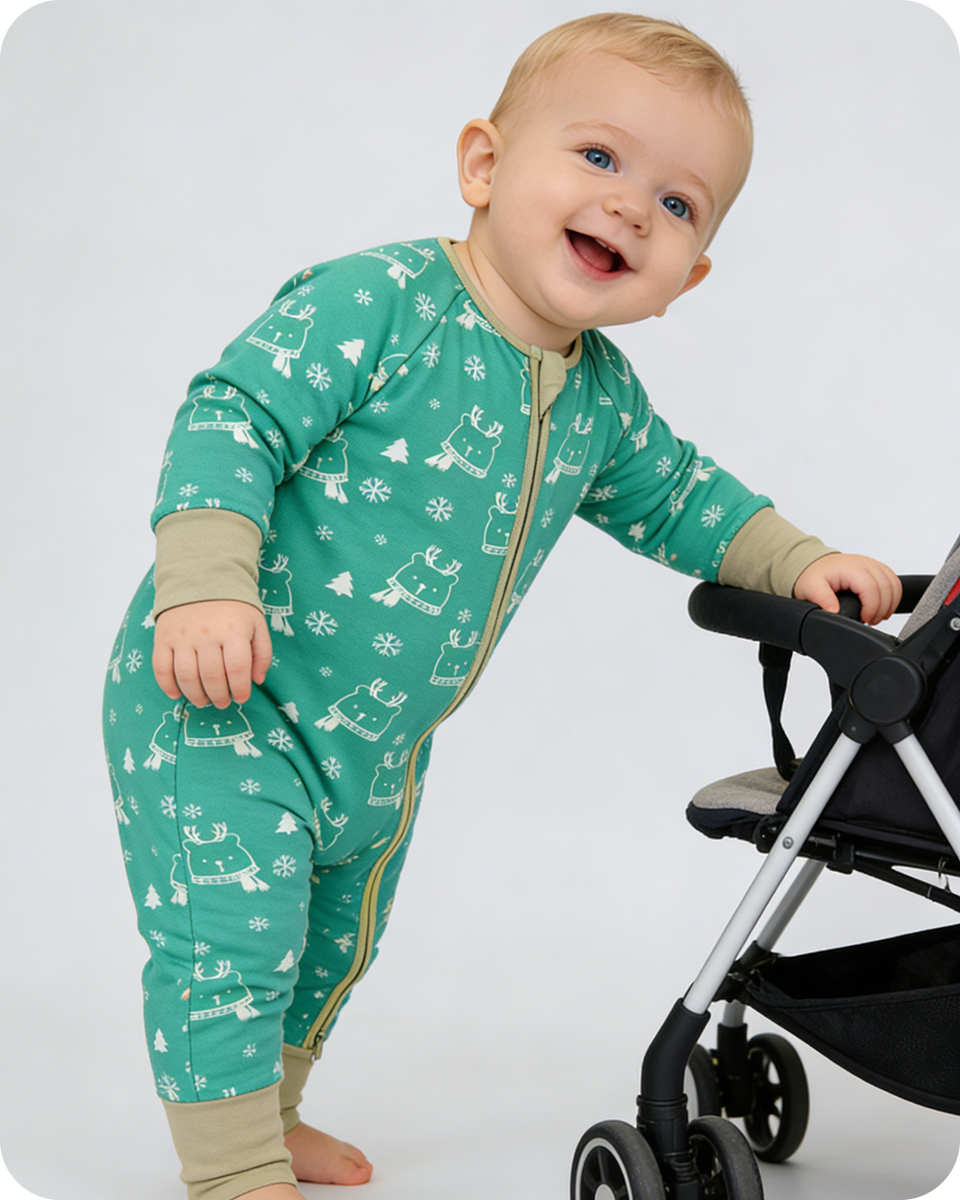 Give your baby the gift of gentle luxury with this thoughtfully designed romper that merges style, functionality, and wellbeing. The Reindeer Print Bamboo Baby Zipper Romper isn’t just clothing — it’s a nurturing cocoon that supports your baby’s delicate skin while inspiring smiles with its adorable design.